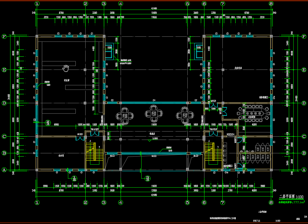 某休闲旅游度假区游客接待中心设计图纸包括:设计说明、总平面布置图、节能专篇、各层平面图、屋顶平面图、1-8轴立面图、2-2剖面图、门窗表、楼梯详图、门窗详图等